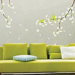 Click Here to see more reviews about: Spring Flowers & Green Birds Home Peel & Stick Wall Sticker Decals