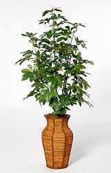 (More customer reviews)This schefflera will likely catch anyone's attention when added to a room. The leaves are different hues, so it isn't very easy to tell that is artificial. The wood and rattan planter is attractive, and the potting is convincing. This is one of the best artificial plants I have come across yet. I recommend buying it!