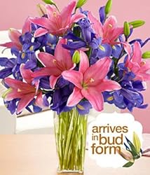 Lilies and Iris: Say "Happy Birthday" with this flower bouquet full of pink lilies and blue iris. A great way to say "Happy Birthday", "Thank You", "Get Well" and I Love You" too. From ProFlowers.