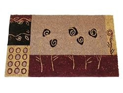 Coir, also known as coco, is a gift of nature extracted from the husk of coconuts and is one of the strongest natural fiber available. The husks are retted in lagoons for up to ten months to soften the fibers. These golden fibers are beaten with wooden mallets, fluffed and spun into yarn using spinning wheels called "ratts". With rare skills and craftmanship, handed down through generations, this golden fiber is either meticulously handwoven or power loomed with a PVC backing in the Southern region of India to create a wide assortment of enchanting door mats, matting and rugs. Widely used and heavily favoured for hundreds of years, coir products are well known for their rigid strength, mildew resistance and water absorbancy. The sturdy bristles of the door mat brush clean stubborn dirt and hides it within the fibers to protect your home interior. Geometric flower design stenciled in natural and acrylic dyes for a durable design.