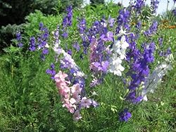 ROCKET LARKSPUR IS AN ANNUAL WITH PINK, PURPLE, WHITE, AND BLUE FLOWERS. IT MAKES A GREAT CUT OR DRIED FLOWER AND ATTRACTS BEES AND BUTTERFLIES. PREFERS FULL SUN IN WELL DRAINED SOIL. IF YOU PLANT THEM IN THE SPRING PUT THE SEED IN THE REFRIGERATOR FOR A FEW WEEKS BEFORE YOU PLANT. LEAVES AND SEED ARE POISONOUS.Seeds are packaged and germination tested for current year. BLOOMS APRIL - SEPTEMBER HEIGHT3 - 4 FEET SOWING DEPTH 1/8 INCH GERMINATION 2 - 4 WEEKS
