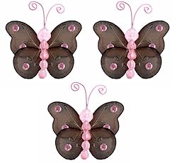 Click Here to see more reviews about: 3" Brown Pink Mini Wire Bead Butterfly Butterflies 3pc set - nylon hanging ceiling wall baby nursery room wedding decor decoration decorations girls bedroom party shower