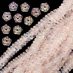 Czech Little Flower Rondelle Spacer Beads5mm Diameter, 2mm ThickRose AB 100 Beads / 7.25 Inches Strung