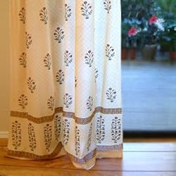 These unique decorative tab top cotton voile sheer curtain panels are the perfect accent for a stylish yet relaxed living room, country cottage, bedroom, kitchen or bathroom window. This tab top curtain is printed on voile; a soft, light, gossamer cotton weave, with wonderful light filtering properties that incredibly, also provides much needed privacy. Each curtain is 63 inch long and 46 inch wide and printed on preshrunk, superior grade, soft cotton voile and is exquisitely finished with 5, 4-inch tabs (included in the panel length) on the top for easy hanging. Also comes with a color-matched tieback. Each piece is handcrafted using intricately hand carved wooden blocks and is an original work of art distinguished by the work of the artisan, the particular lot of dye, and even varying weather conditions. Tonal variations are inherent to the block printing process and enhance the individuality, character and uniqueness of each creationAbout this design: Red Poppy: The Red Poppy stands diminutive yet bold with its papery red blooms in full display. The mughal inspired poppy motifs rest on a rich golden honey tan ground that is textured ever so slightly with a delicate floral architectural ÒjaalÓ (latticework). The jaal, which is characteristic of Indo-Islamic architecture, provides subtle ornamentation while accentuating and integrating the overall design. The simple classic elegance and relatively neutral palette of the Red Poppy render it a design for all seasons and effortlessly versatile in its application