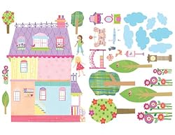 Wallies Peel & Stick Wall Play Play House mural is made of durable, self-adhesive backed vinyl that can be removed and repositioned easily. Have fun using your colorful Wallies Play House Wall Play mural to decorate your child’s room. To use, simply peel the pieces off of the backing in the package and apply to any clean, smooth surface or painted dry wall. This product is not recommended for textured or rough surfaces and should not be placed on newly painted walls, which usually need about 30 days to fully cure. To remove, simply peel and reposition to another area or return it to the original backing for storage. Wallies will not harm or damage surfaces and will not leave a sticky residue. Each package comes with 1 house 21-3/4 inches by 16-1/4 inches; 2 girls 4-3/4 inches by 3 inches; 4 bunches of flowers 22.5 inches by 3 inches to 6 inches by 2 inches; 7 trees 4.5 inches by 2-1/4 inches to 11.5 inches by 3.5 inches; 8 pieces of furniture 1.5 inches by 1.5 inches to 5-1/4 inches by 2 inches; 7 clouds 3 inches by 1-3/4 inches to 5 inches by 3 inches. All Play House Wall Play mural pieces are in bright, vibrant colors. The package measures 21.5 inches by 4 inches.