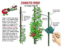 The "Great Tomato Debate": cage or stake? How about both? The TOMATO RING gives you the best of both worlds - the convenient support of a cage, but the superior height and stability of a stake. A cage on a stake! You decide what type and height stake to use, then adjust your TOMATO RINGS, low or high, according to your plant. Absolutely no tying, ever! Simple to use; hides in the foliage. Comes as a 4-pack. Ring is galvanized spring steel and is 10" x 5" oblong shape. Will support up to 10 pounds/ Clamp is high quality green resin. Both blend in beautifully with the plant leaves. Can also be used for flowers and climbing vegetables such as pole beans, cucumbers, or peonies and dahlias. (Stake not included)TR-4 Tomato Ring - Package of FOUR