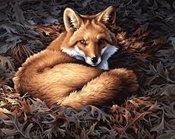 Nestled in fallen leaves, a bold red fox captures your gaze. Kit contains high quality acrylic paints, pre-printed textured art board, and #1 round paintbrush. Finished Size: 20-inches-by-16-inches