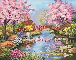 The colorful blossoms and quiet serenity of a Japanese garden are brought to life in this paint-by-number design. Techniques to achieve the subtle shading are included in the instructions. Kit contains high quality acrylic paints, pre-printed textured art board, and #1 round paintbrush. Finished Size: 20-inches-by-16-inches