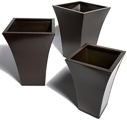 Create a lovely effect with these dark copper finish planters from Strathwood. Available in a set of three sizes; outfitting the yard, patio, or solarium is a breeze. Constructed of 100-percent galvanized sheet with a dark copper-colored finish, the planters are durable and attractive. A slightly tapered design makes for a more elegant silhouette. The design looks great in rows or clustered. The large planter measures 19.7 inches high by 13.8 inches wide; the medium planter measures 17.3 inches high by 11.8 inches wide, and the small planter measures 15 inches high by 9.5 inches wide.