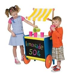 14N Features: -Big, colorful, wooden stand. -Two oversized wheels and large handle to move it around. -Chalkboard front panel. -Dry erase counter top. -Canvas awning. -For indoor and outdoor use. -Comes with pitcher and 4 cups. -Easy to assemble with included tool.