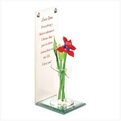 Present your beloved with a beautiful everlasting bouquet formed of hand-crafted glass! Colorful art glass flowers sparkle in their delicate vase, while floating behind, a tenderly written verse declares your undying love. A lustrous treasure to enjoy forever! Weight 0.1 lb. Glass. 2 1/4" x 2 1/2" x 6" high.