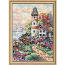 This coastline sentinel stands against a breathtaking morning sky. A combination of Cross and Half Cross Stitch achieves the realistic color shading in the sky and garden. An extensive palette of cotton thread brings this guardian of the rocky shore to life. Kit contains cotton thread, 18 count ivory Aida, and needle. Finished Size: 5-Inch by 7-Inch