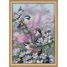 Amid a profusion of spring blossoms, three chickadee friends frolic with seasonal abandon. Kit contains cotton thread, 16 count dove Grey Aida, needle and easy instructions. Finished Size: 5-Inch by 7-Inch