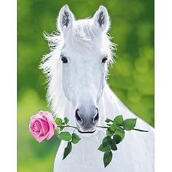 Click Here to see more reviews about: White Horse (Holding Pink Rose) Art Poster Print