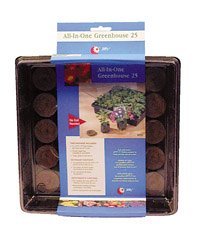 11"x11" tray and dome with 25 42mm Jiffy-7 peat pellets Ideal for starting your seeds indoors! Just put a few seeds in each pellet and add water. Each pellet has its own compartment. All you have to do is put the dome lid on top and you have ideal temperature and climate settings to propagate your seedlings!The peat pellets expand into a self contained soil container held together thin netting. Drop the netted container directly into the ground or planter pot. No mess, no fuss. This is the best and easiest way to start plants early.
