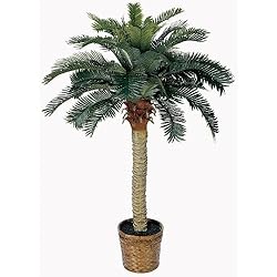 Standing a perky 4 feet tall this palm-like tree is a fabulous tropical accent for your home or office. Sizeable enough to liven up any space yet compact enough to fit any size room. Not a detail was missed, from its dark olive green leaves down to the sturdy spiny trunk. This tree is so natural, you may be tempted to water it.