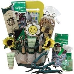 The perfect gift for that special gardener in your life! This canvas gardening tote is filled to overflowing with sweets, treats and useful tools she needs to keep her beautiful garden growing... She'll enjoy a pair of gardening gloves, garden kneeling pad, plant misting bottle, 3 decorative garden tools, and soothing eucalyptus hand lotion to use after the work is done. What makes this practical gift sweeter still is the English Breakfast Tea, Gourmet Caramel Popcorn, Bonbon Fruit Candy and large hand frosted Sunflower Cookie, beautifully detailed and almost too pretty to eat, but YUMMY! It's even finished with a cute set of decorative garden tools and sunflowers. Each gift is hand crafted with attention to detail, tie it with ribbons and include a personalized gift message from you to convey your best wishes. Manufactured by Art of Appreciation Gift Baskets.WHEN WILL MY GIFT SHIP? WHEN WILL MY GIFT BE DELIVERED? Please review the "Shipping Rates and Policies" link below forIMPORTANT INFORMATION on the shipping and delivery time for your gift purchase.