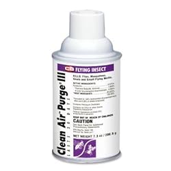 Metered refill is designed for use with TimeMist Clean Air Purge III. Clean Air Purge kills and repels flies, mosquitos and small flying moths, leaving behind a woodsy fragrance without lingering insecticide odor. Refill lasts 30 days. Clean Air Purge III refill contains .975 percent Pyrethins, 1.95 percent PBO and 3.05 percent MKG264. EPA-registered refill does not contain CFCs or other harmful ozone depending substances. Only available in California and OTC states.