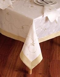 Brand New beautiful Beige with gold star embroidery and gold board table cloth 36x36" square table topper 60x84" OB for 4-6 seats 72x108" OB for 6-8 seats 72x120" OB for 8-10 seats 64" round for 4-6 seats 72" round Condition: Brand New 30 Day Satisfaction Guarantee(NO QUESTIONS ASKED)