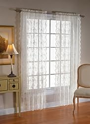 Traditional lace coordinates with fresh flowers adorning all edges. The subtle simplicity of these delicate curtains adds a touch of romance to your home.