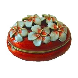 Buy cheap Pink Plumerias Red Pill Box Franji Pani Flowered Trinket Jewelry FREE SHIP Certificate of Authenticity Hawaiian now.