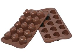 (More customer reviews)I bought this to make Valentine's Day heart-shaped chocolate truffles. This makes the perfect size truffle - about 1" deep. All the other heart-shaped chocolate molds I saw were too shallow for truffles. This was my first time using a silicone mold for chocolate, and I found that the chocolate doesn't release on its own. After the truffle was completely ready to come out (filled, capped and set), I had to push each form inside out to get the truffle out. You have to be very gentle doing this so you don't break the chocolate. But it works. You might want your shells to be on the thicker side so they are less likely to break. The one thing I don't like about the mold is that each heart has a teardrop-shaped cutout on it, which I wish it didn't have.