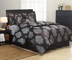 Click Here to see more reviews about: 7 Pieces Brown with Silver Jacquard Floral Comforter Set Bed-in-a-bag Full or Double Size Bedding