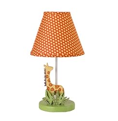 The perfect finishing touch for your nursery! Part of the Tiger Tales collectionthis decorator lamp is a wooden cut out of the yellow and orange giraffe standing on a green base with dimensional foliage. The shade is covered in an orange mini print.