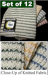 The famous Sangamon Mills Sunflower Dish Cloth. A favorite for church fundraisers for decades. Sold as a set of 12 cloths, 3 of each color: Red, Green, Blue and Yellow. Dish cloths should be WASHED before first use to remove any residual dye and stray cotton fibers resulting from the manufacturing process.