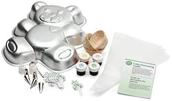 Everybody just loves teddy bears!Wilton's Baby's 1st birthday set includes our favorite Teddy Bear cake pan and Wilton's 25 piece cake decorating set. Set includes: metal decorating tips 3, 16, 32, 104 and 352; 12 disposable 12 in. decorating bags; two tip couplers; 4 icing colors (.5 oz. each): Lemon Yellow, Pink, Sky Blue, Leaf Green; 1 1/4 in. flower nail No. 9; instruction booklet. Also included is Baby's 1st cupcake baking cups, 75 count2 inch diameter cups and teddy bear party pixs!