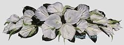 Exquisite high quality white calla lilies swag with off white filler flowers and lush green leaves. It is a versatile swag because it is easily detachable into 2 18" long branches.Additionally, each flower's stem is wired, so you could easily shape it the way you like it.
