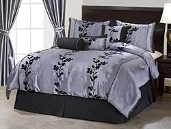 (More customer reviews)Beautiful embroidery, Quality stiching, Well made bedding. I will order from this maker again. My purchase of the 7 Pieces Grey and Black Embroidery Floral Comforter was a birthday gift for my daughter. My daughter's bedroom now has a more grownup look thanks to this gorgious Bed-In-A-Bag Set!