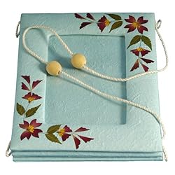 Perfect for beautifully displaying a series of your favorite memories, this hanging picture frame set is entirely handmade by talented artisans of northern Thailand. Featuring three separate frames connected by sturdy rope, it can be easily suspended on a wall, cupboard door, or anywhere else you can imagine. Crafted from sturdy, textured lotka paper, an environment-friendly material made from sustainable natural resources using traditional tools and techniques, this frame set is embellished with a cool shade of baby blue and accented with delicate pressed flowers. The set includes three transparent, plastic protective plates to keep your photographs free of fingerprints and dust. Measures 9.5 inches wide x 7.5 inches long x 0.5 inches high and holds three 4 x 6 inch photographs. AsiaEXP brings you authentic handcrafted goods from a variety of world cultures. With this purchase you are not only receiving a beautiful handicraft, you are also supporting a great cause.By shopping with us you help to sustain the talented individuals making these fine products and preserve the rich cultural heritage of Thailand. The handcrafted nature of this product will cause minor differences in design, color and sizing. Subtle variations will occur from piece to piece, adding to the unique quality of individual creations. Measurements may vary slightly.